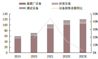 值得注意的是,虽然我国检测与量测设备国产化率较低,大部分市场被科磊、应用材料、日立等美日厂商垄断,但受益于国内晶圆厂逆周期扩产需求,预计2023年中国大陆量/检测设备市场规模将达到326亿元,其中纳米图形晶圆缺陷检测设备、掩模版缺陷检测设备、关键尺寸量测设备、无图形晶圆缺陷检测设备市场规模将分别达到80、37、33、32亿元。 先进封装工艺带来的设备需求会大幅推动封装测试设备市场规模扩大,伴随集成电路复杂度提升,量/检测设备市场规模也将稳定提升。面对如此快速增长的市场需求,国内量/检测设备厂商有望乘国产替代之风而起!