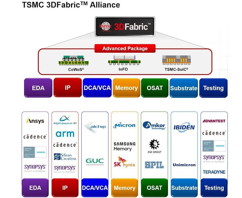 截止发稿,已有包括美光、三星记忆体、SK海力士等在内的19个合作伙伴同意加入,主要涵盖EDA芯片设计自动化、IP知识产权、DCA/VCA合同芯片设计、Memory存储芯片制造等环节。据悉,这一联盟是台积电第六个开放创新平台(OIP)联盟。