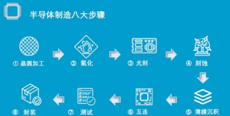 一个半导体产品制造出来,大致要经过晶圆加工—氧化—光刻—刻蚀—薄膜沉积—互连—测试—封装八个步骤,这其中半导体测试是半导体产业链中不可或缺的一环,它直接到关系终端产品良率和品质。
