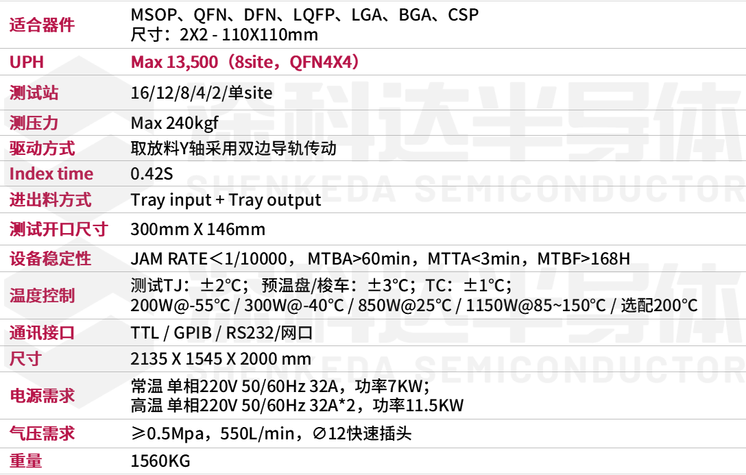 SKD308H平移式测试分选机适用于MSOP、QFN、DFN、LQFP、LGA、BGA、CSP等产品规格在2X2-110X110的常温和高温测试分选、分类需求,为客户带来高质量的产品输出。